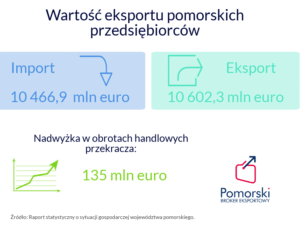 Województwo pomorskie w roku 2016 było jednym z najbardziej proeksportowo ukierunkowanych regionów w Polsce. Nadwyżka w obrotach handlowych przekraczała 135 mln euro.